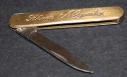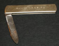 Objet publicitaire utile et personnel, le canif ancre la marque dans le quotidien de l’utilisateur. Bardinet a largement utilisé ce support viril et populaire pour promouvoir l’ensemble de son portefeuille : du rhum Negrita, bien sûr, mais aussi des liqueurs comme « Salambo » ou le rhum Old Nick. Pour le collectionneur, l’intérêt réside dans la recherche des différentes variantes de gravures, de fabricants et de modèles, témoins des campagnes promotionnelles successives.