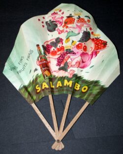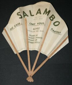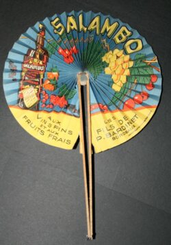 L’éventail publicitaire est un objet délicat, souvent associé à une saisonnalité estivale et à un public potentiellement plus féminin. Distribué sur les terrasses des cafés ou lors d’événements, il était un cadeau pratique et élégant à une époque où la climatisation n’existait pas.