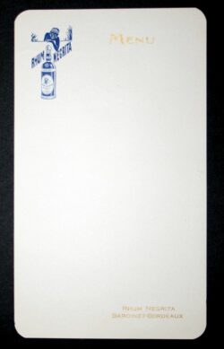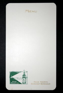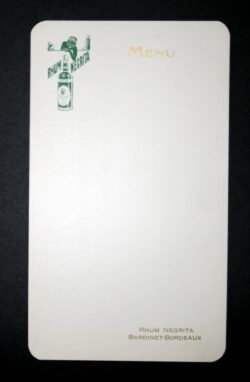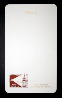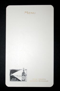 Le menu est un document qui nous renseigne sur la place du rhum dans la gastronomie de l’époque, les cocktails proposés et les prix pratiqués. C’est une source d’information socio-économique autant qu’un objet publicitaire.