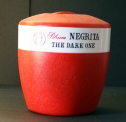 Plusieurs pièces révèlent des facettes spécifiques de l’entreprise. Un pochoir en laiton rappelle le passé industriel et logistique pour le marquage des caisses, tandis que des slogans en langues étrangères (espagnol avec « Su fama recorre el mundo », anglais avec « The Dark One ») témoignent des fortes ambitions de la marque à l’international.