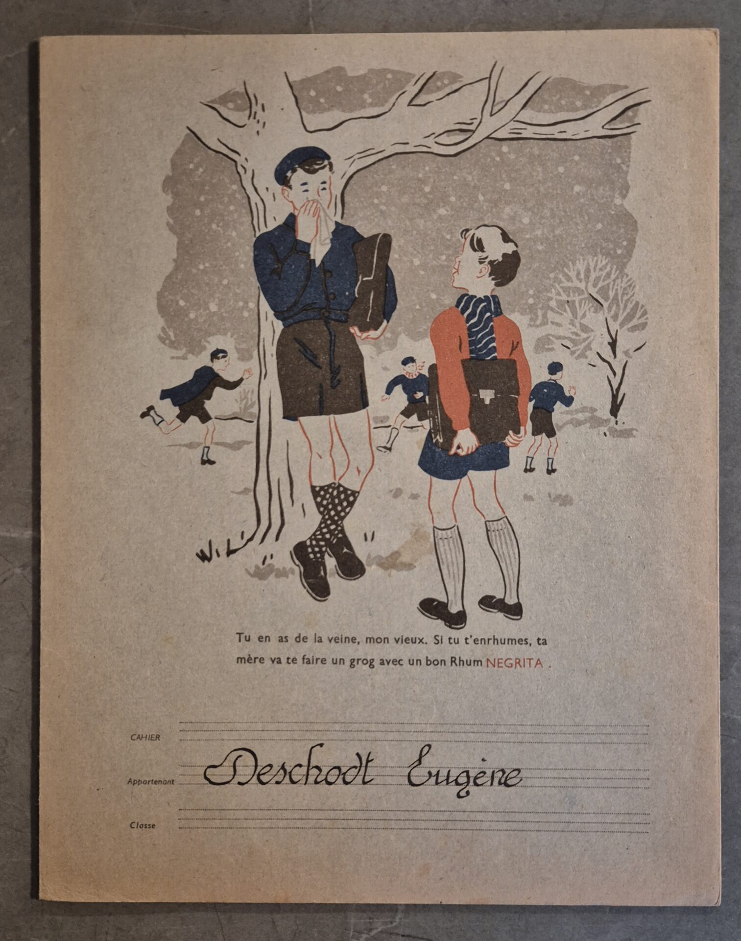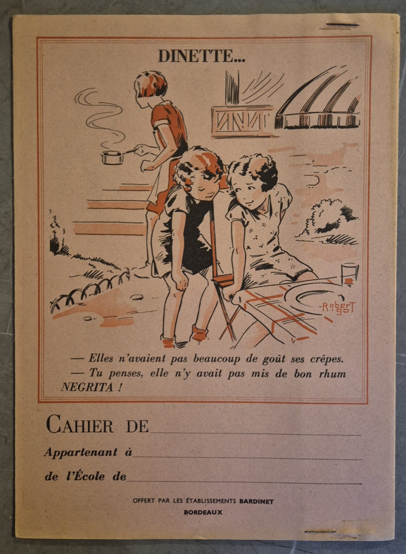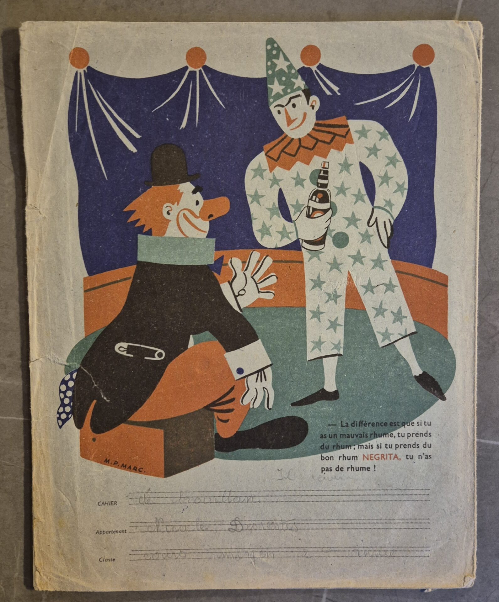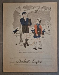Dans la même veine que les buvards, le protège-cahier ancre la marque dans l’univers de l’école. Sa durée de vie, plus longue que celle d’un buvard, assurait une visibilité quotidienne à la marque pendant toute une année scolaire. Le graphisme était souvent ludique, parfois éducatif (tables de multiplication au dos, etc.), mais toujours centré sur l’icône.