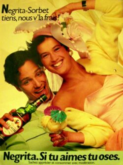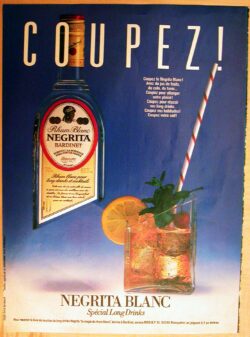 Contrairement à l’affiche, conçue pour un impact visuel immédiat dans la rue, la publicité de magazine s’invite dans l’intimité du foyer. Le message peut y être plus détaillé, avec davantage de texte pour argumenter sur la qualité, suggérer des recettes de cocktails ou raconter l’histoire de la marque.